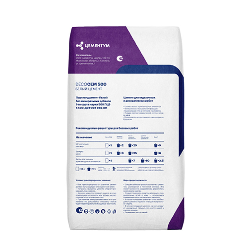 Белый цемент DecoCEM 500 ГОСТ 965-89 - 50 кг