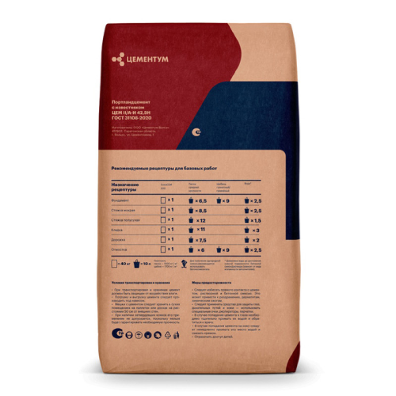 Портландцемент ЦЕМЕНТУМ выпускается по современной технологии и соответствует требованиям российских стандартов качества. Материал подходит для механизированных стяжек, изготовления мелкоштучных изделий и приготовления строительных растворов.